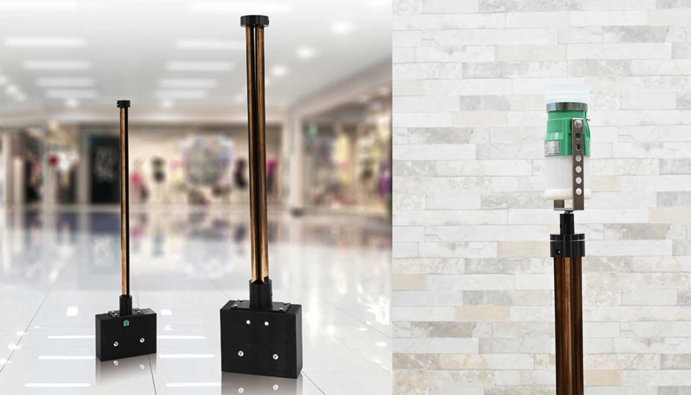 この機械は、収納時は20cmほどの箱に収まる小ささ。でもスイッチひとつで、最大4メートルまでスッと伸びて、高所の機器やスイッチに手が届きます。